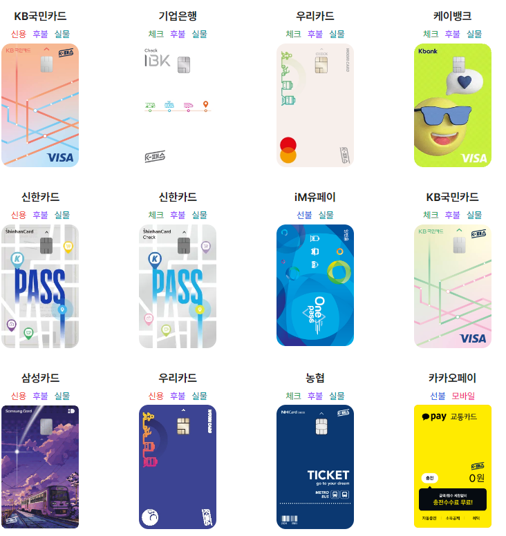 또한, 카드를 사용할 때마다 포인트가 적립되며, 이 포인트로 교통비를 결제할 수도 있습니다. 아래에서 본인에게 맞는 카드를 비교한 후 신청하시기 바랍니다.